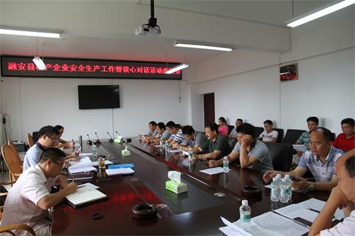 会议共三项议程:一是组织林产企业负责人及参会人员认真学习习近平总书记和李克强总理关于安全生产工作的重要指示以及新《安全生产法》关于生产经营单位安全生产保障相关条款;二是了解和掌握林产企业安全生产工作近况,并就强化红线意识、依法履职尽责、防范遏制事故等话题与企业负责人进行深入交流;三是根据谈心对话中所反映出来的工作问题,组织开展新一轮安全生产隐患排查,确保不留死角,杜绝重特大安全生产事故的发生。